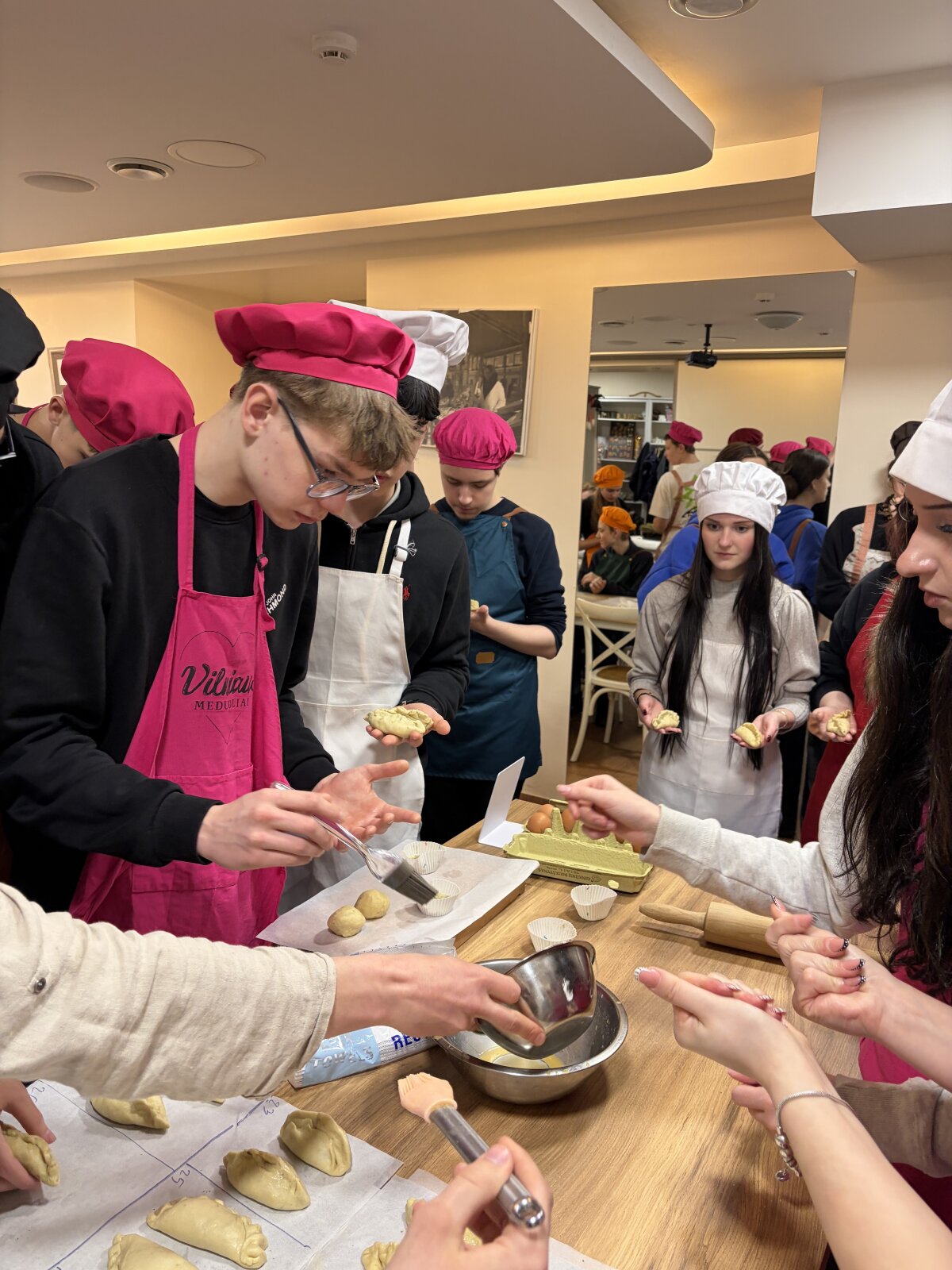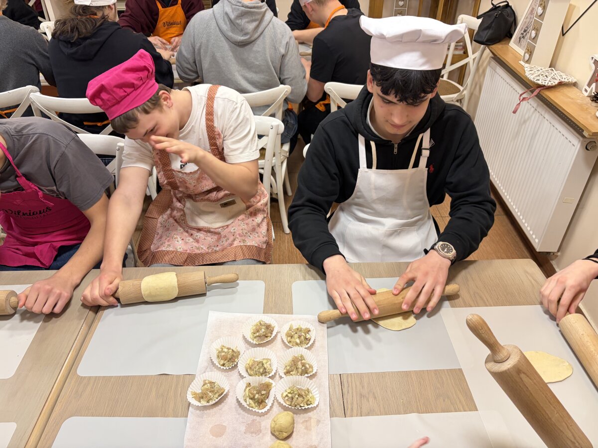 Ketvirtadienį, kovo 25 d. gimnazijoje vyko edukacijų ir STEAM diena. Ia ir IVa klasių gimnazistai tą dieną gilinosi į kibinų kepimo tradicijas. Kočiojo tešlą, formavo kibinus, tepė kiaušinio plakiniu ir šovė į krosnį. Darbas nebuvo lengvas, bet vertėjo stengtis! Skonis neapsakomai gardus, ypač tada, kada esi alkanas!