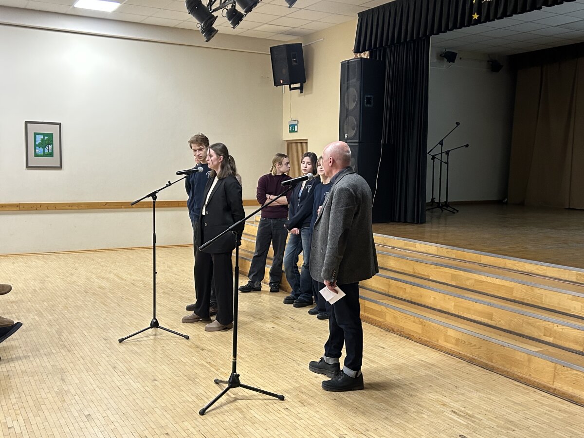 Sausio 20 d. gimnazijos IV kl. mokiniai ir jų tėvai susitiko su Mykolo Romerio u... -