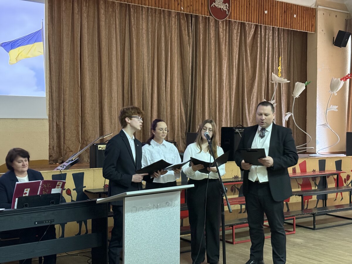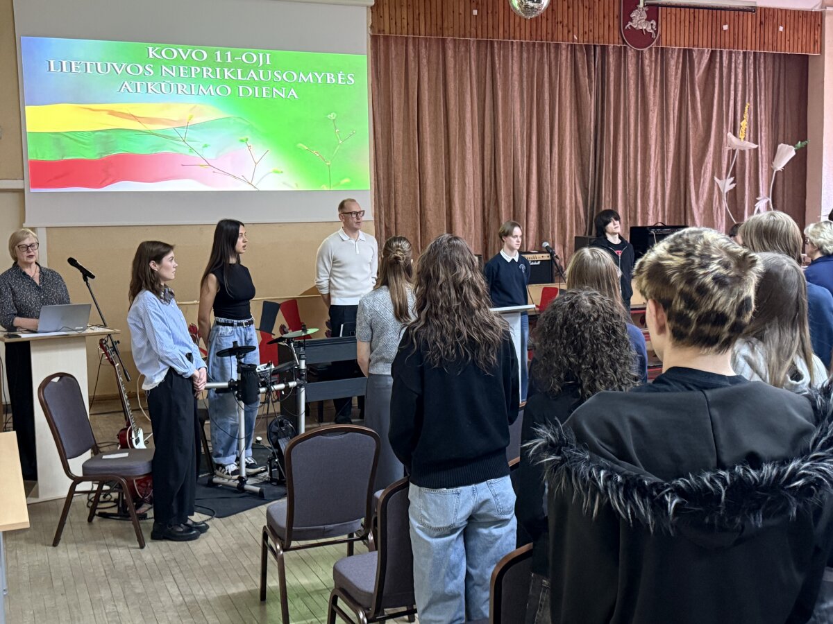 Mūsų gimnazijoje tapo tradicija - kasmet Kovo 11-ąją minėti rengiant pilietiškumo pamoką bei įtraukiant visą gimnazijos bendruomenę. Šių metų pilietiškumo pamoką pradėjome apžvelgdami karo įvykius Ukrainoje. 2022 m. vasario 24 d. prasidėjo Rusijos invazija į Ukrainą. Lietuva tapo viena aktyviausių Ukrainos rėmėjų (ginklais, humanitarine pagalba) ir griežčiausių Rusijos sankcijų iniciatorių. Savo tvirtą poziciją išlaikėme ir šiandien, Ukrainai įžengus į ketvirtus karo metus. Kuriame ir gyvename laisvoje Lietuvoje, todėl yra smagu pasidžiaugti savo mokinių laimėjimais ne tik gimnazijoje bet ir Vilniaus mieste bei Lietuvoje. Mūsų visų pasiekimai parodo, kaip yra svarbu drąsa, pasiaukojimas, bendrystė ir vienybė. Laisvės kelias – sudėtingas, reikia ginti laisvės vertybes, įsitikinimus, demokratiją. Svarbiausia tikėti darbščia, atsakinga, drąsia, pilietiška Lietuva.