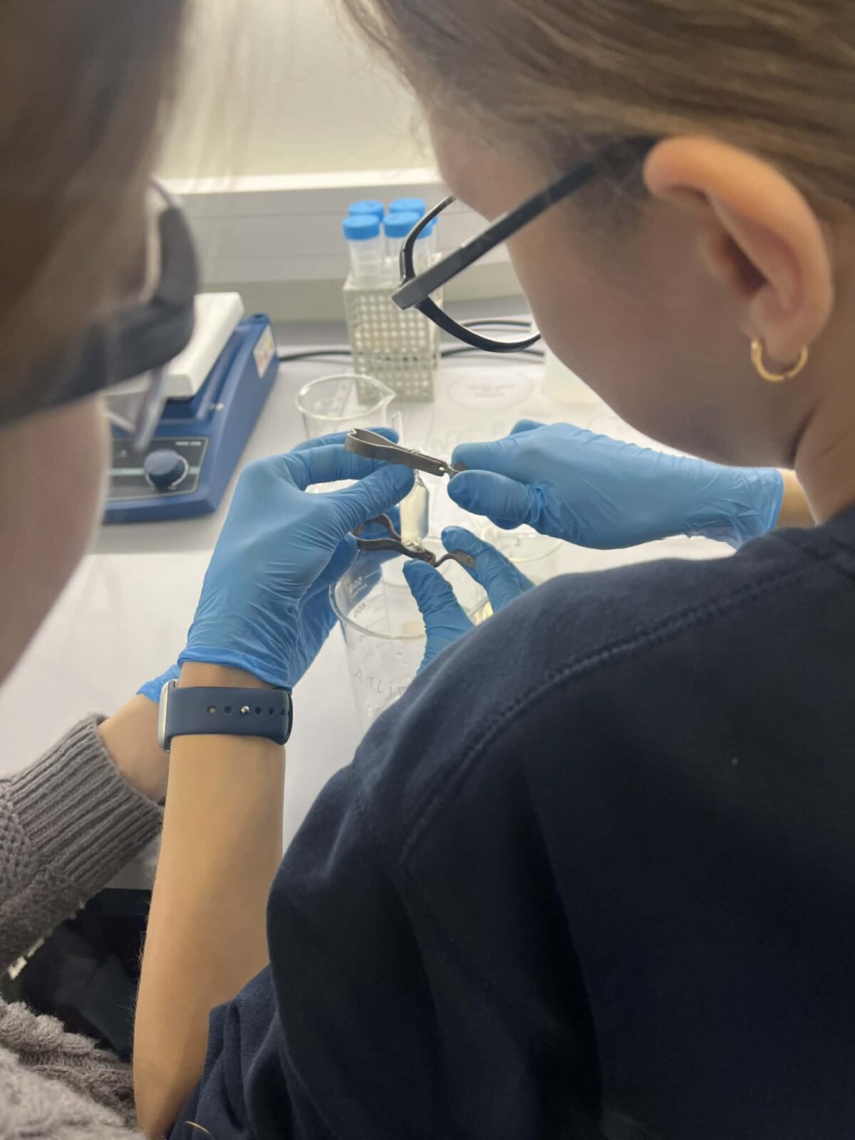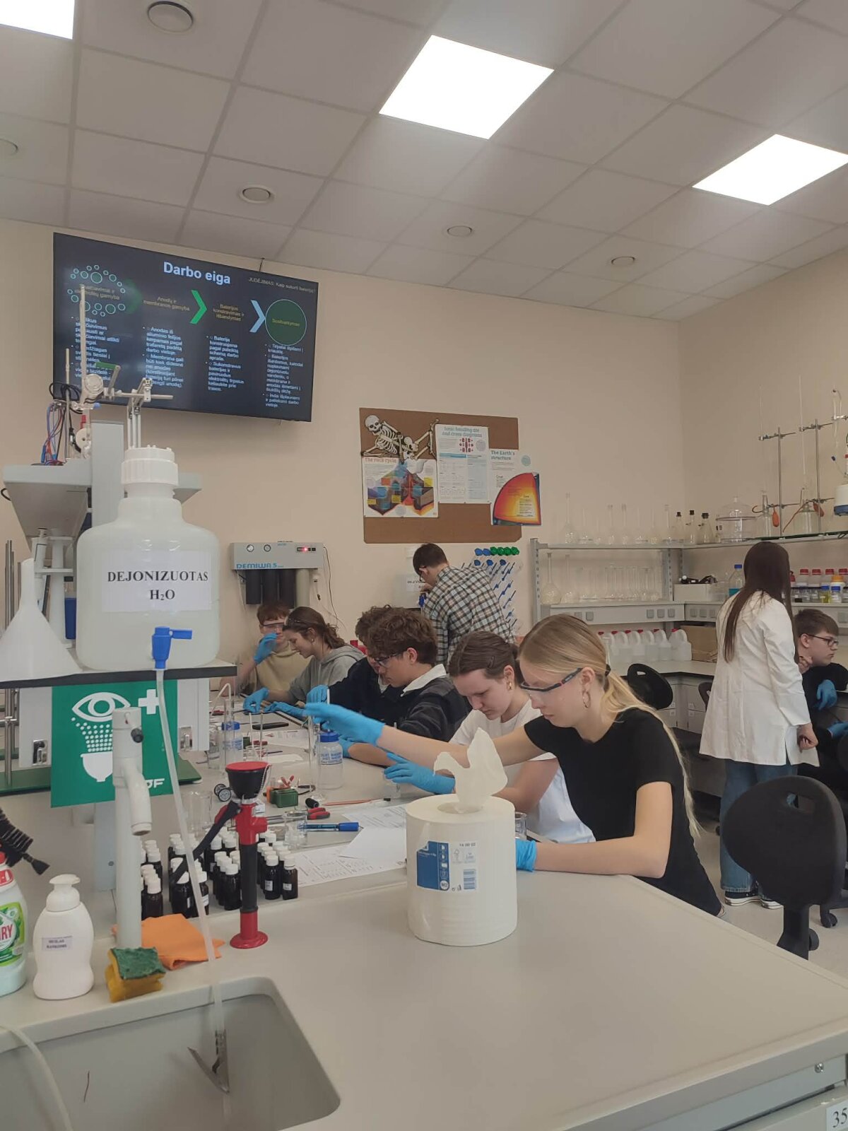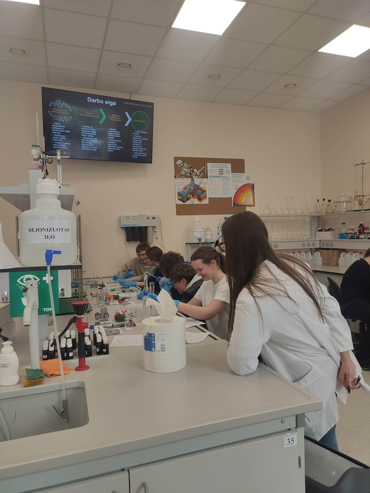 universitete. Mokiniai buvo suskirstyti į dvi grupes: viena jų „gamino“ dirbtinį inkstą, o kita –