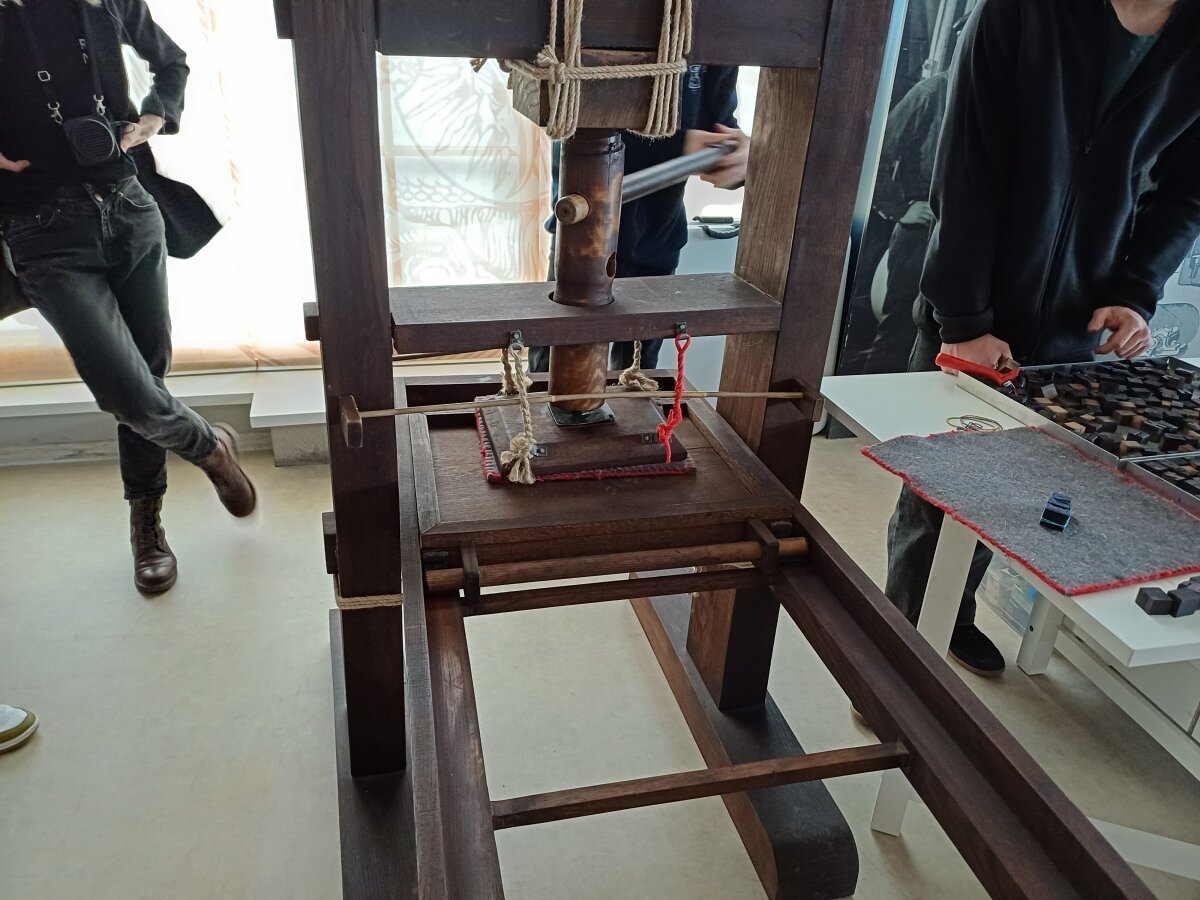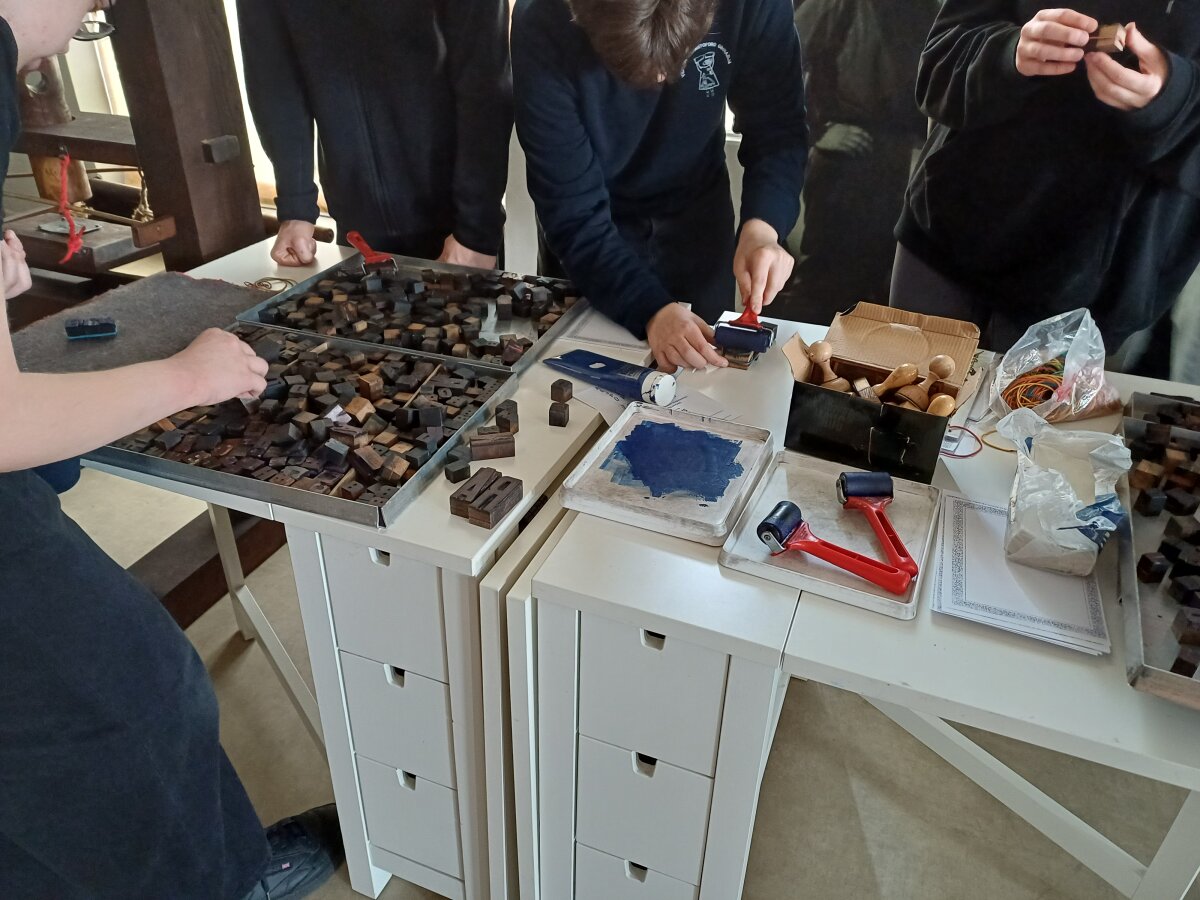 Toliau mokiniai turėjo praktinę pamoką, kurioje susipažino su rankinio spaudos preso veikimu ir išmoko pasigaminti savo vardą. Susipažino su senais technikos prietaisais. Ši edukacija mokiniams patiko, o didžiausią įspūdį paliko atkurtas praėjusio amžiaus gyvenamasis kambarys.