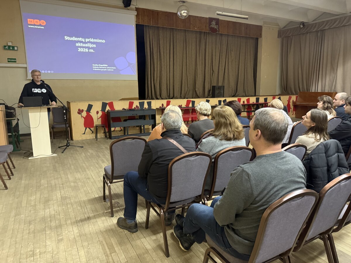 Sausio 20 d. gimnazijos IV kl. mokiniai ir jų tėvai gimnazijoje susitiko su Mykolo Romerio universiteto studentų priėmimo centro priėmimo grupės vadovu Sauliumi Bugailiškiu. Susitikimo metu mokiniai susipažino su 2026 m. Bendrojo priėmimo į aukštąsias mokyklas tvarka, bendrosiomis priėmimo taisyklėmis, minimaliais reikalavimais bei konkursinio balo formavimo principais.