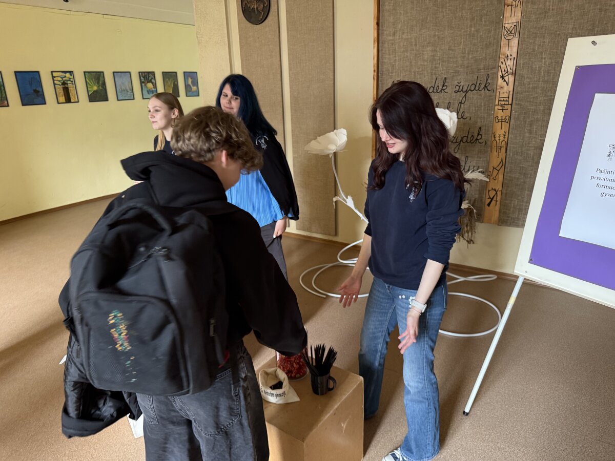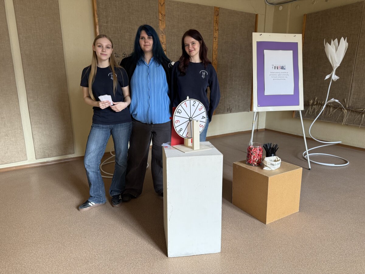Būsimi mokiniai ir tėvai turėjo galimybę ne tik pasivaikščioti gimnazijoje, susipažinti bei pabendrauti su mokytojais, bet ir sukti laimės ratą, dalyvauti viktorinoje.